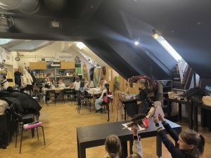 Mjesto okupljanja: „Školica za 5“, Hebrangova 5, Zagreb. Radionica obuhvaća razgled izložbe uz stručno vodstvo i radionicu u Lutkarskom studiju ZKM-a, Teslina 7.